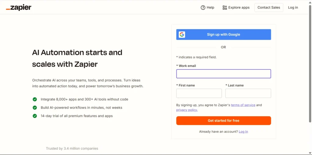 Zapier公式サイトへアクセス