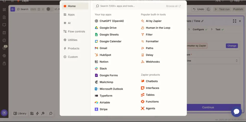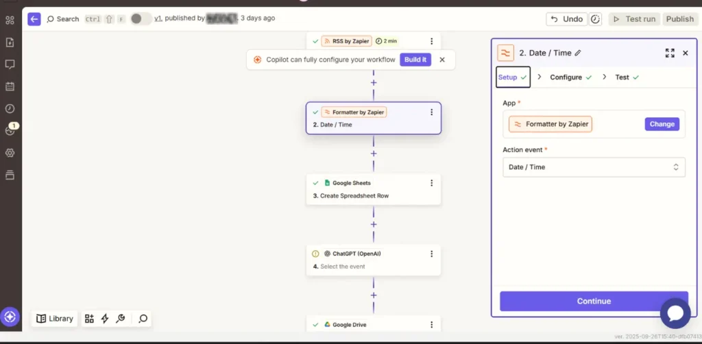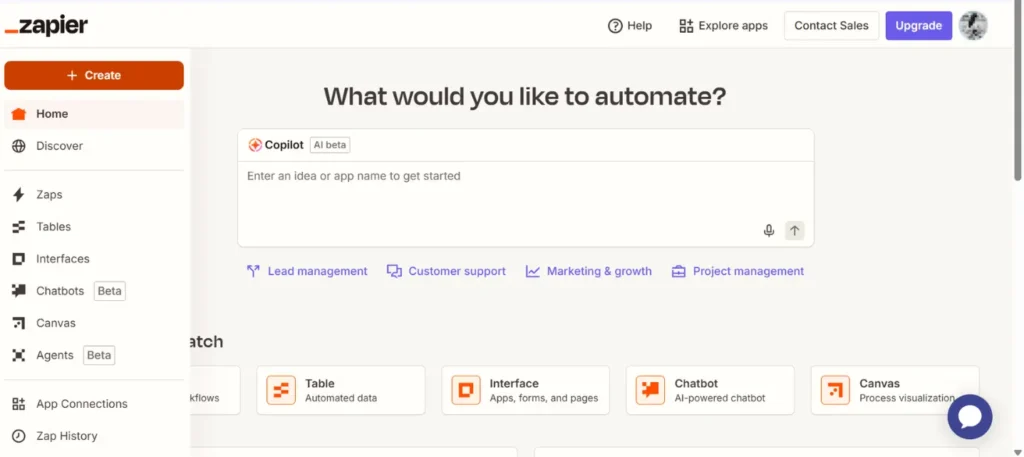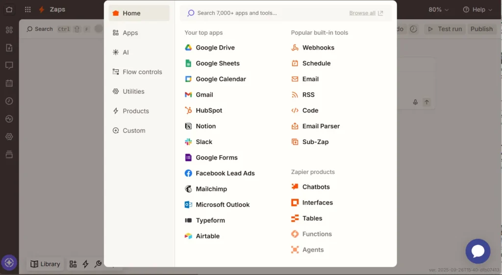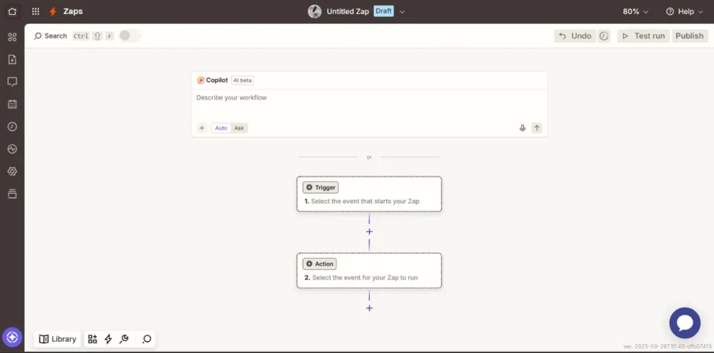 新規Zapの初期画面。上部のCopilotエリアは今回使用しません。