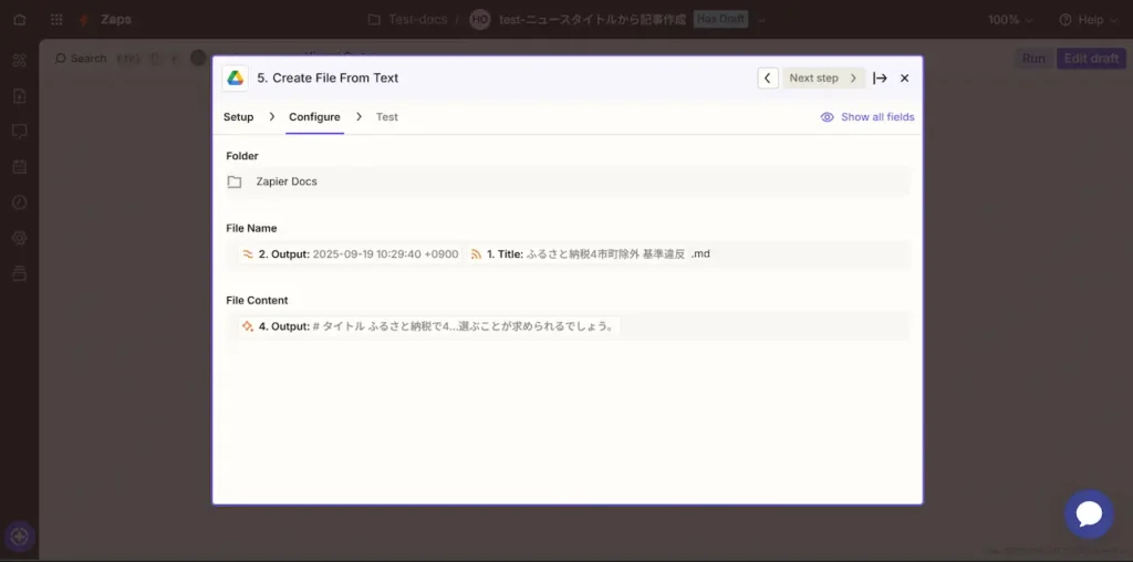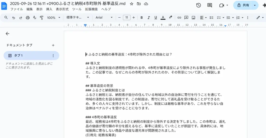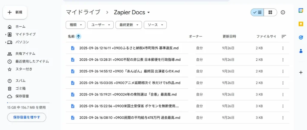 最後にGoogle Drive上で記事ファイルを自動生成します。