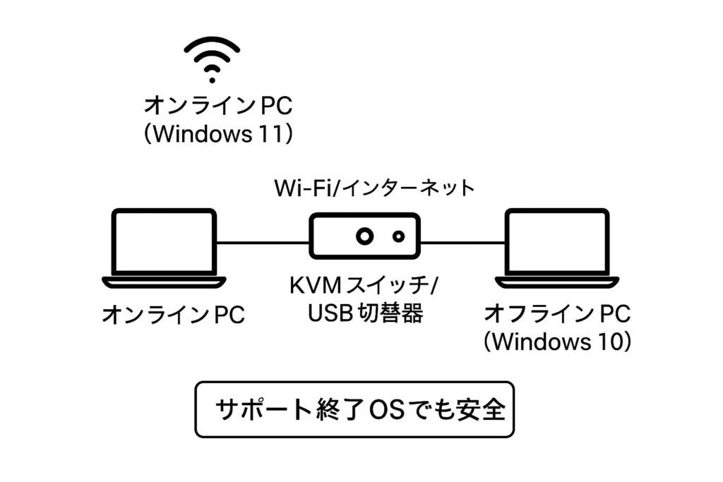 - オフラインのWindows 10 は操作用や特定ソフト専用として限定的に使用する。